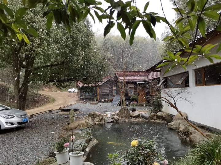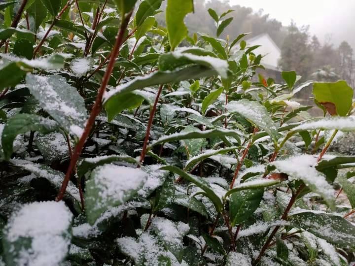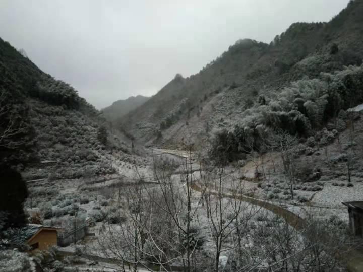 每年入冬,桐庐的第一场雪几乎都出现在这里。目前积雪1-2厘米,地面已被白雪覆盖。
