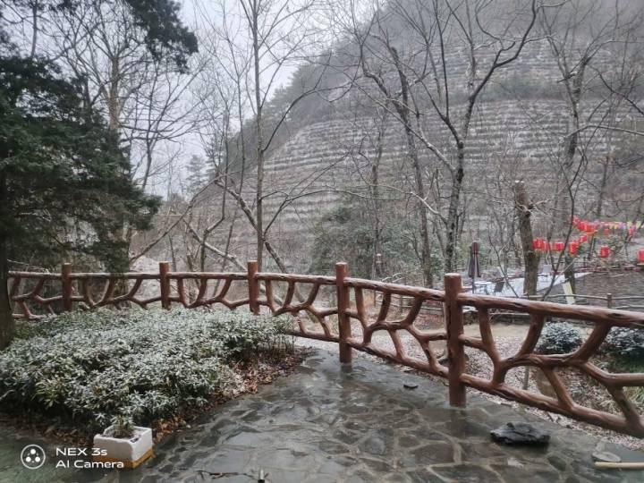 细雪素裹了整座山,板桥自然村里的旅游景点、设施及全村的远山近屋都变得“头顶花白”,成为奏响冬季的第一道乐章。