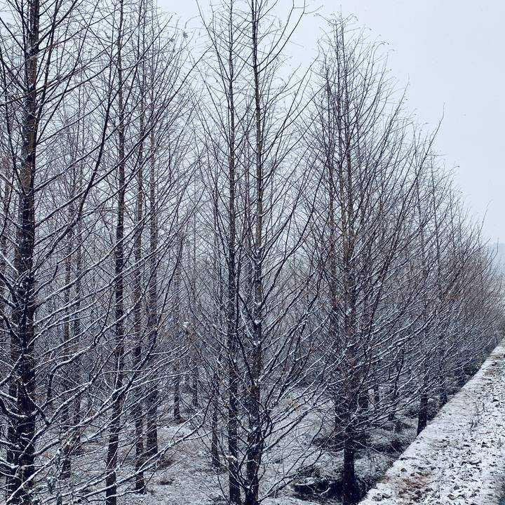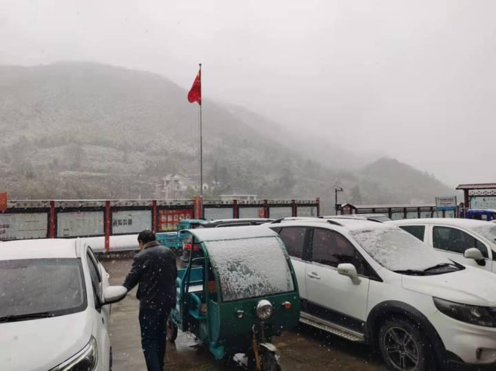 12月25日早晨6时左右,玳瑁村迎来新雪。目前地上还没有积雪,但雪仍然还在持续地下。