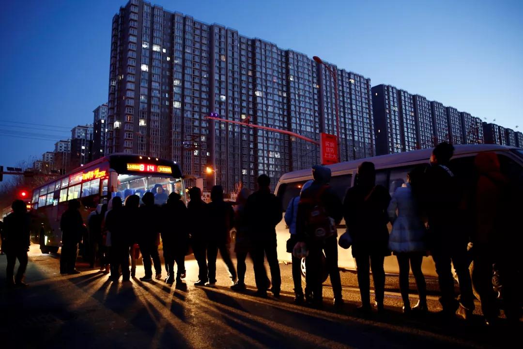 清晨,燕郊排队乘车进京的人。图/中国新闻图片网