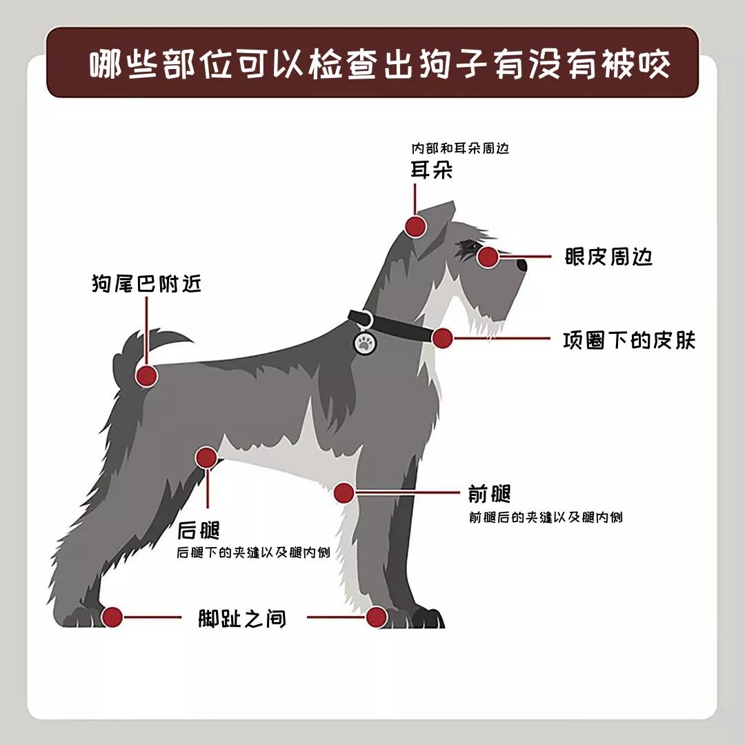 时不时按上图给狗子做全身检查,尤其是狗子出去玩耍回家后。
