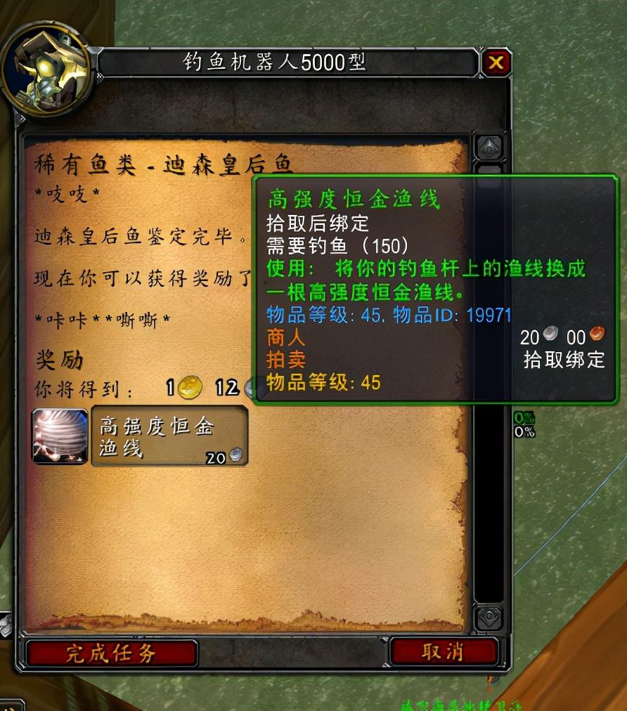 恰巧今天小编参加钓鱼活动就得到了最后一个奖励:高强度恒金鱼线。它的作用和上面两件装备一样,也是加5个钓鱼技能点。看似微乎其微的作用,却是我一直梦寐以求的神器。