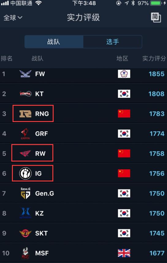 最近,新一期的战队实力排行榜又更新了,RNG的排名仅为世界第三。让小编带大家来看看吧!