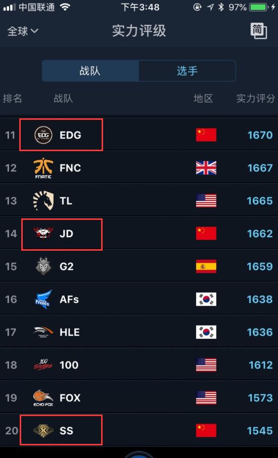 令人没想到的是,夏季赛发挥出色的JDG和洲际赛四强之一的EDG被看衰了,分列第十四和第十一,不过差距并不大。基本这两只战队只要最近发挥好一点,就能打入前十!