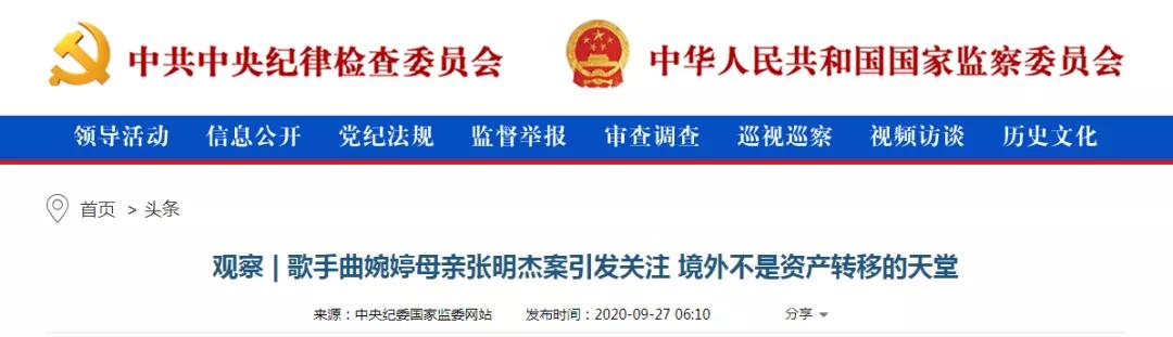 而针对曲婉婷这些年,拿着母亲贪污的钱在国外逍遥自在,中纪委也早就发表评论: