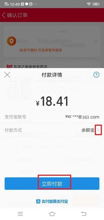 11. 显示付款金额(18.41元),此处我用的是支付宝付款!