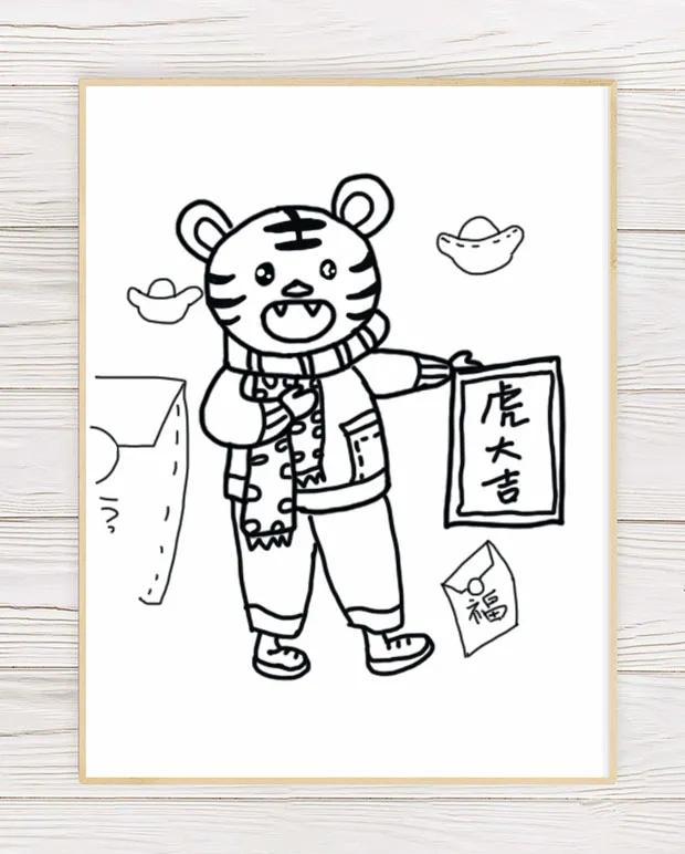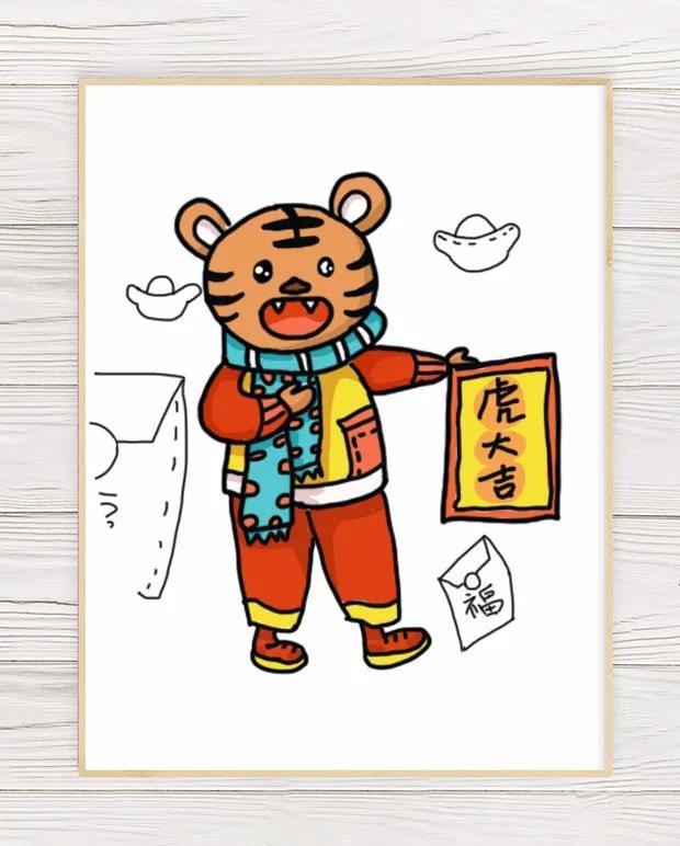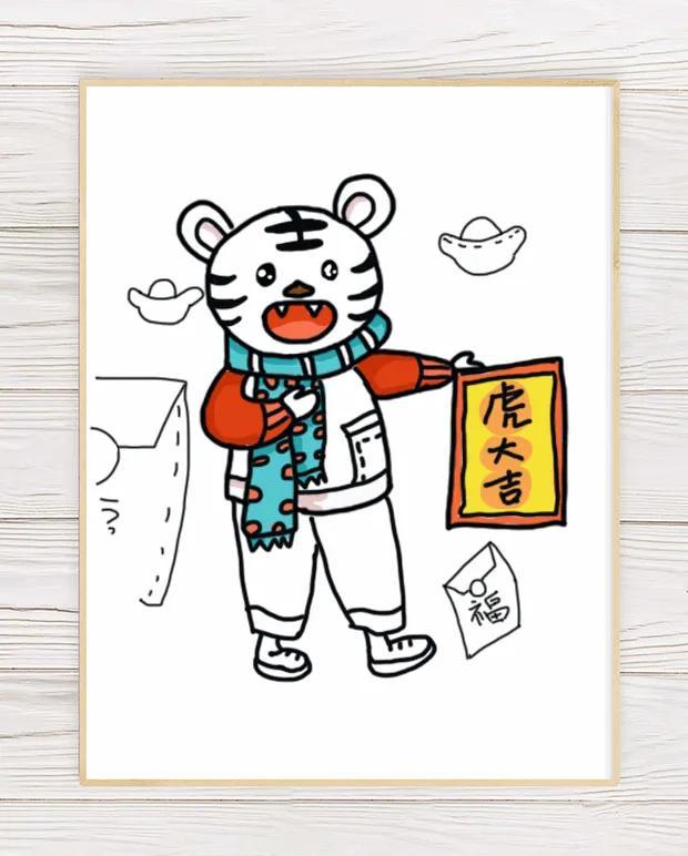 6·画出高光部分,并用图案装饰衣服花纹,更多细节,一幅小老虎庆祝元旦就画好啦