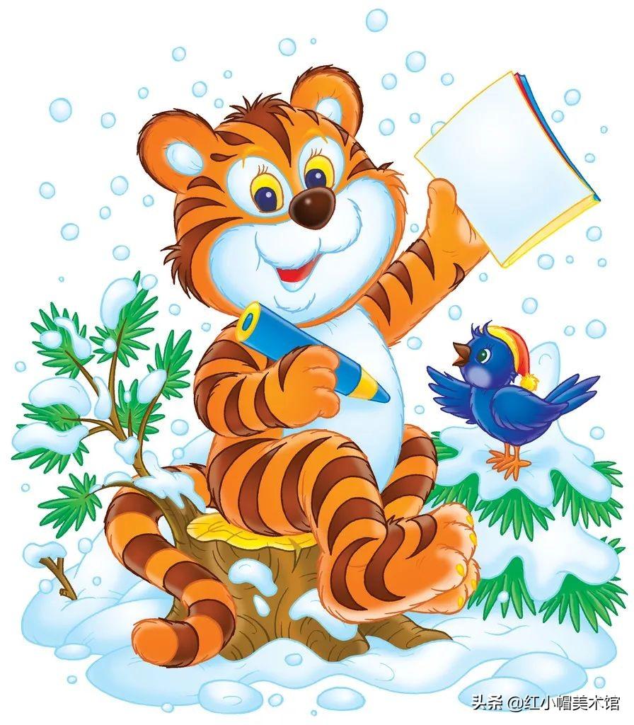 3·给小老虎上色,并直接用颜色画些图案装饰
