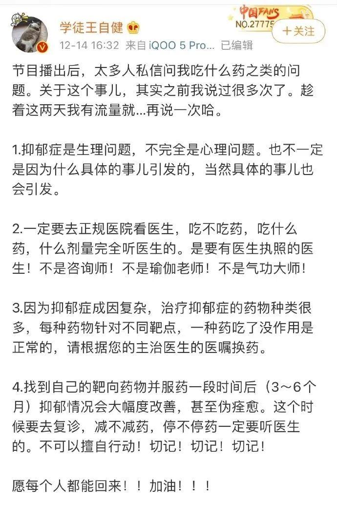 不管家暴是真是假,但王自健的抑郁症看起来是真,尽管已经过去了,旧事重提,如果妻子家暴是真的,那就是对王自健的再次伤害。