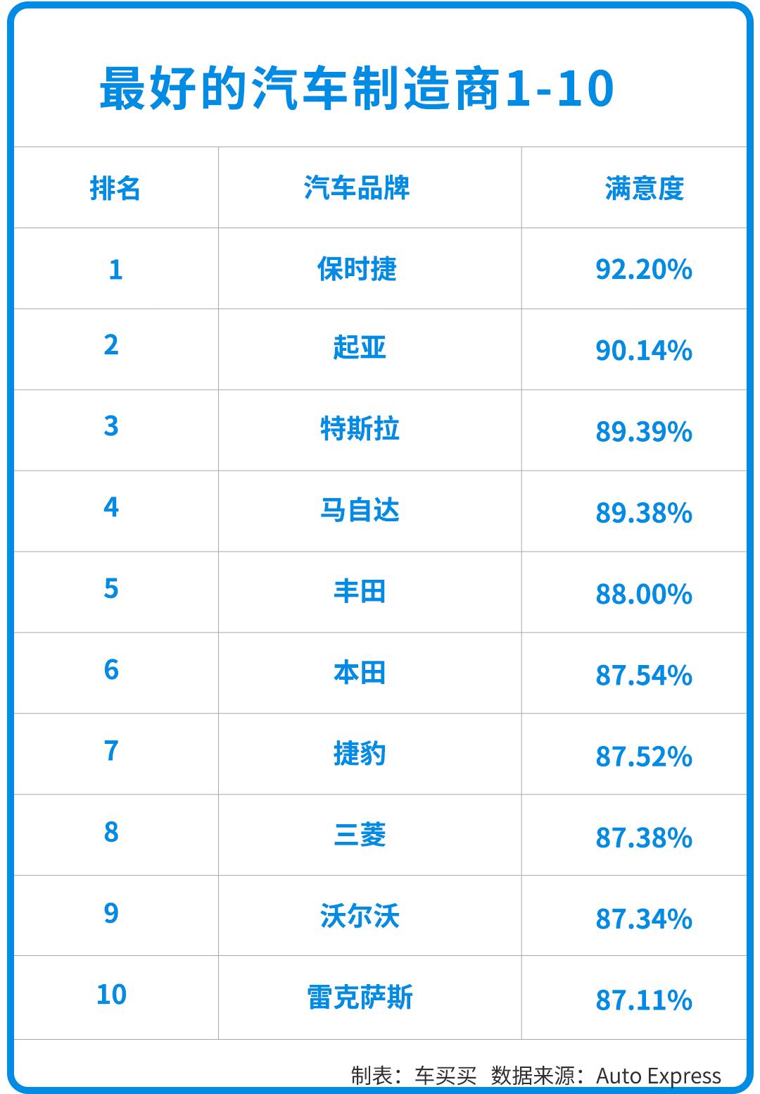 其中保时捷以93.20%的满意度位居第一,而之前常常霸占榜首的雷克萨斯此次仅排在第十,全球最畅销的大众无缘榜前10,一起来看看外媒的评选,与国内消费者选车有多大出入。