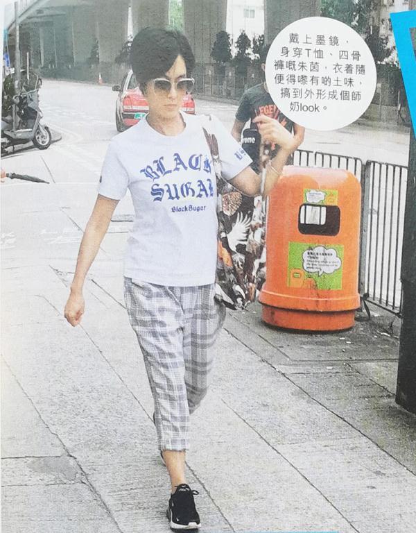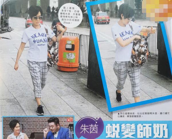 现身街头的朱茵打扮休闲,穿着一件白色T恤衫,搭配一条灰色格子图案的七分裤,背着一个大大的印花单肩包,配合着一头干练的短发和大大的墨镜,走在街上气场十足。朱茵在途中还时不时翻看自己的包寻找什么东西,找完之后又眉头紧锁,再次将包的背带跨在肩上。