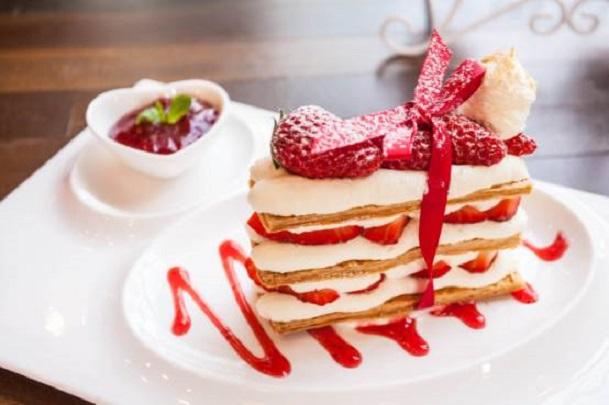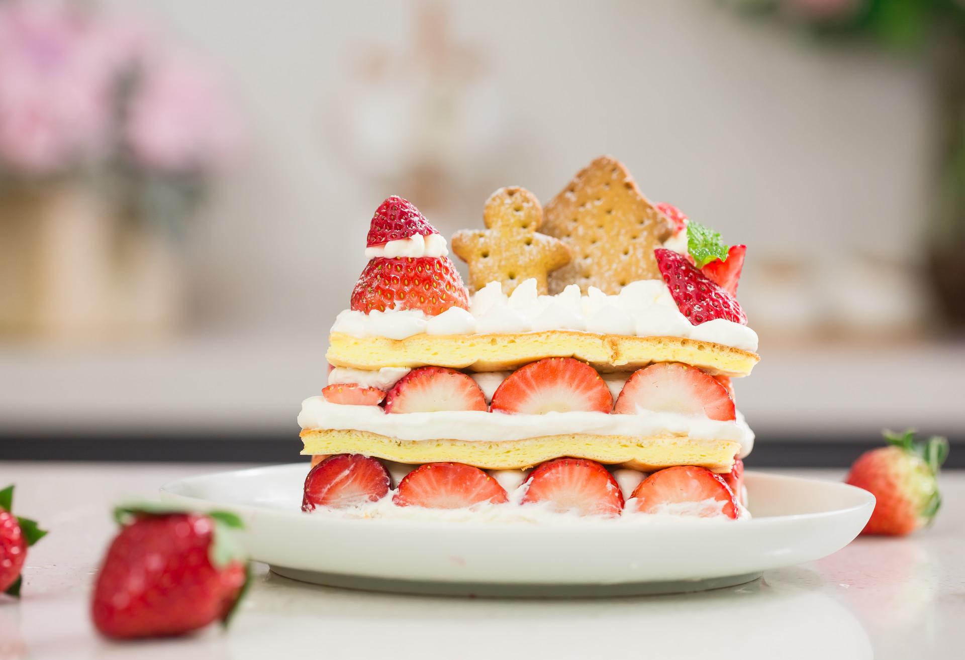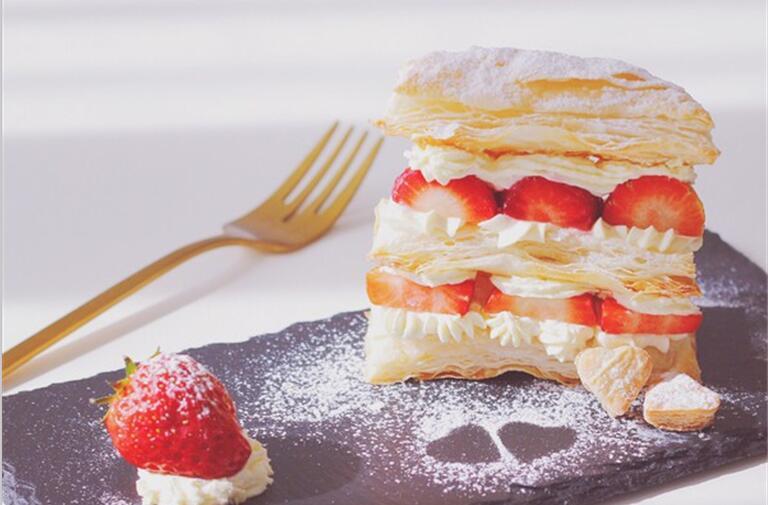 初冬是草莓上市的季节,酸甜可口的草莓含有多种维生素和氨基酸,营养价值很高。不过经常吃未免有点单调,我尝试把草莓和甜点相结合,烘焙了一款非常经典的意大利式蛋糕——草莓拿破仑。