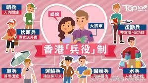 由于女神的身边往往有多个“观音兵”徘徊,因此港人戏称为“香港兵役制”。哨兵(人肉闹钟)、伙头兵(做饭送外卖)、运输兵(接送车夫)、水兵(人肉提款机)、后勤兵(修电脑、做功课)……等等应有尽有,而“娘娘”的正牌男便成为“大将军”。