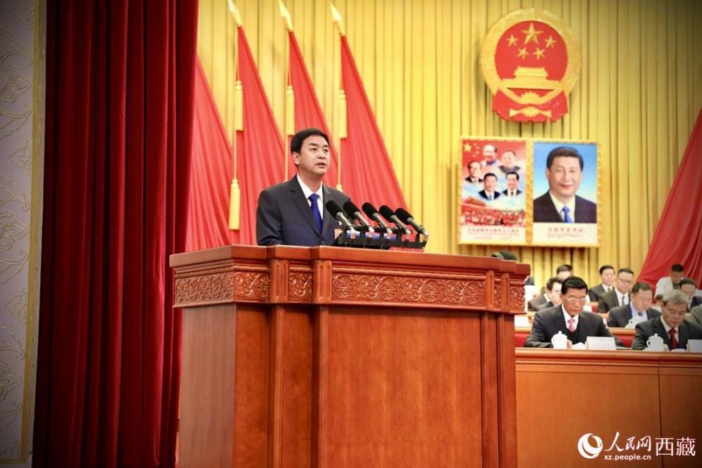 ▲1月4日,西藏自治区人民政府代理主席严金海作政府工作报告。图片来源/人民网