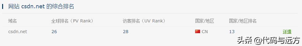 CSDN 是国内IT行业覆盖最全的一个社区。网站链接:www.csdn.net/ 从 Alexa 的排名来看目前排在全球第 26位,当之无愧的为国内技术社区老大。
