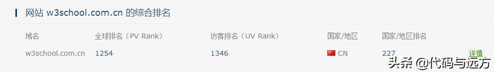 网站链接:www.w3school.com.cn W3School 全球访问量排名在 1254