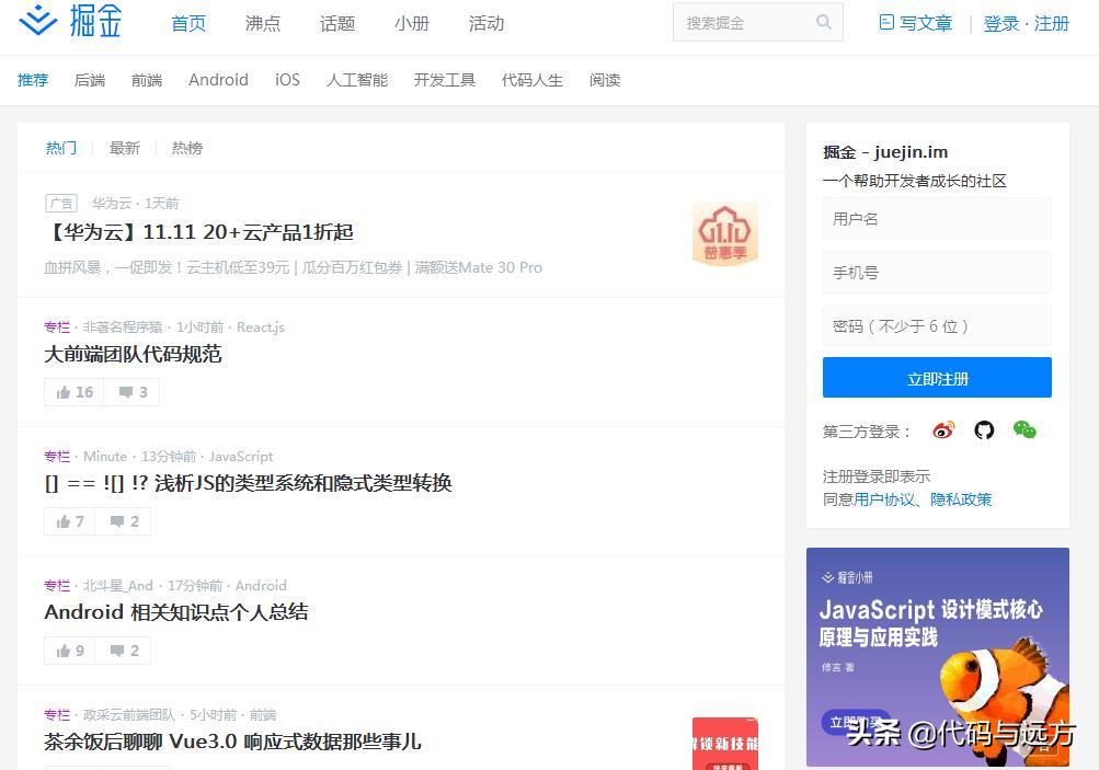 开发者头条也是近两年才突然活跃起来的一个技术分享平台,由一帮程序员所创建,我对它的最初印象是码农周刊,码农周刊是一份专为程序员打造的IT技术周刊。平台每周会精选一周IT技术干货,进行推送。曾经有一段时间发现我的独立博客有一些流量来源于这个网站,才发现它。目前开发者头条已经聚集了一帮技术爱好者。