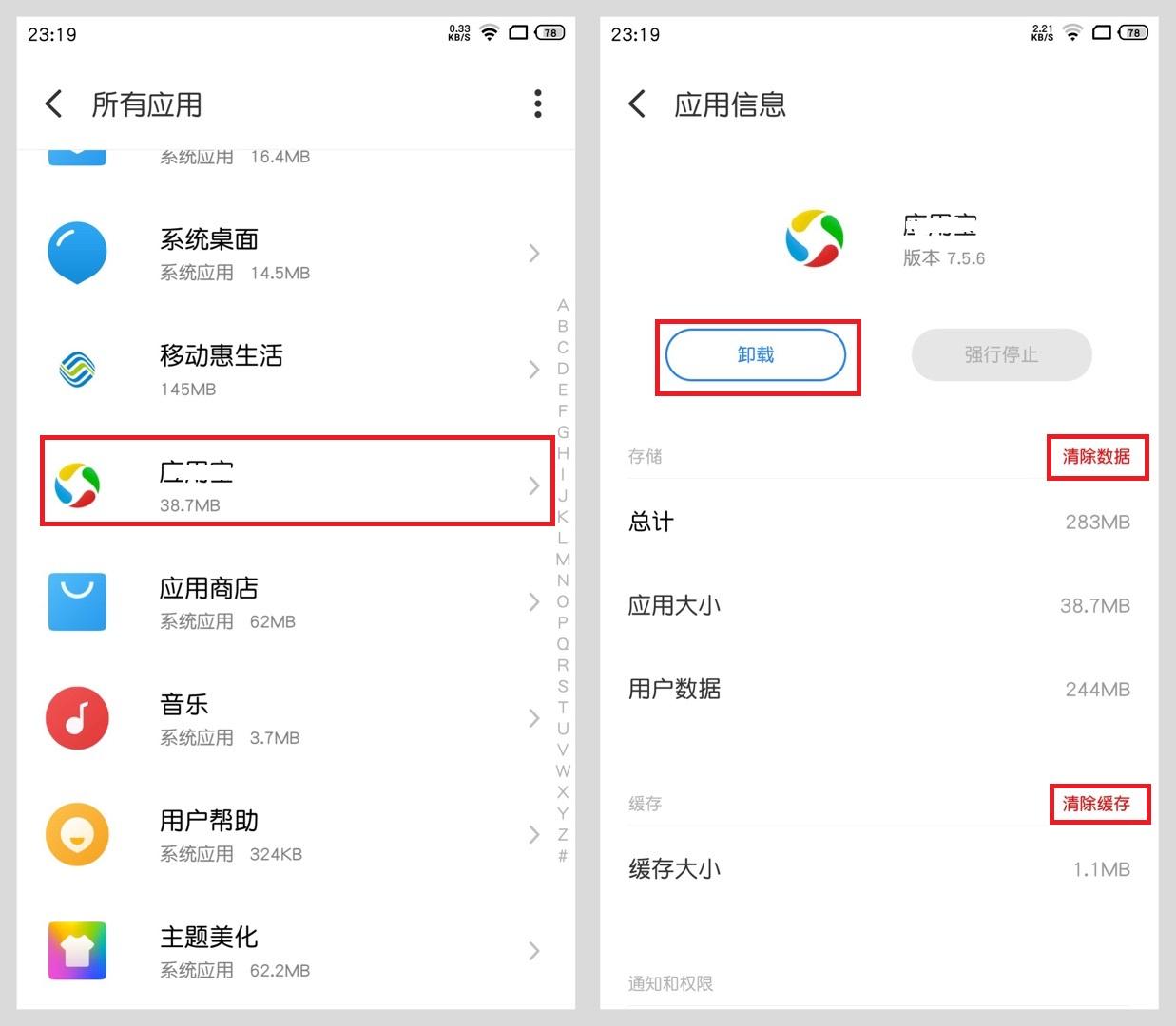 5、最后在【所有应用】列表中,找到你不再需要使用的APP,点击查看应用信息,然后选择【清除数据】和【清除缓存】,最后再选择【卸载】。