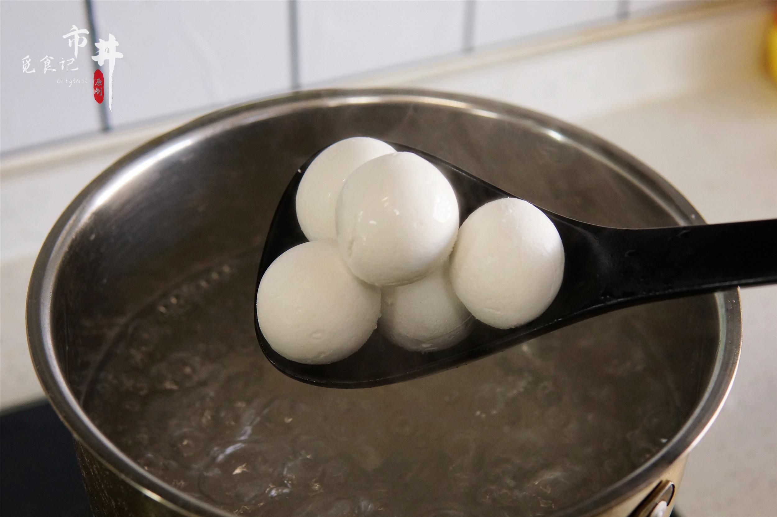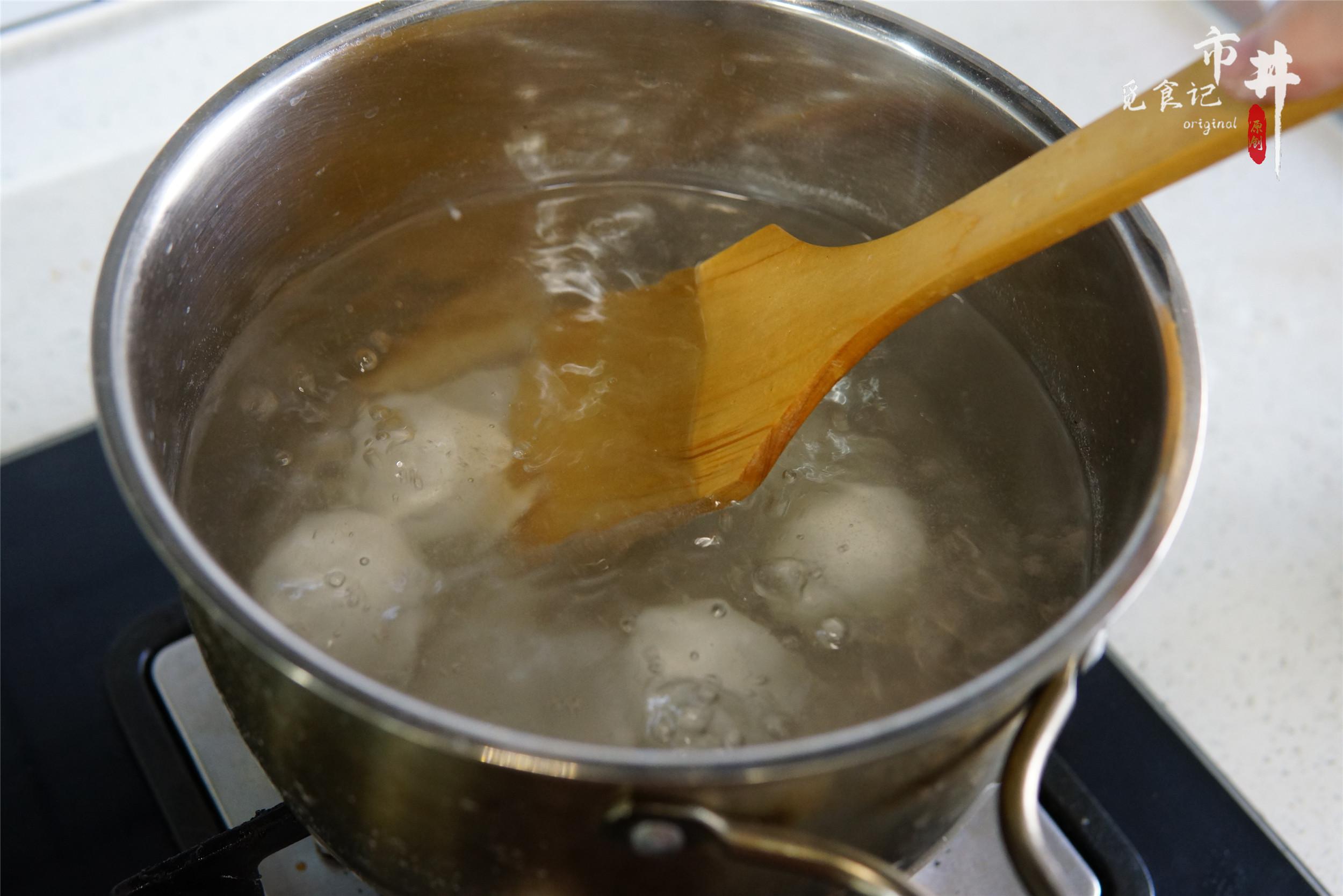 小贴士:用“三点水”,可以将沸腾的水的温度降下去,不会因为水温过高,而使汤圆破皮或者溢锅。
