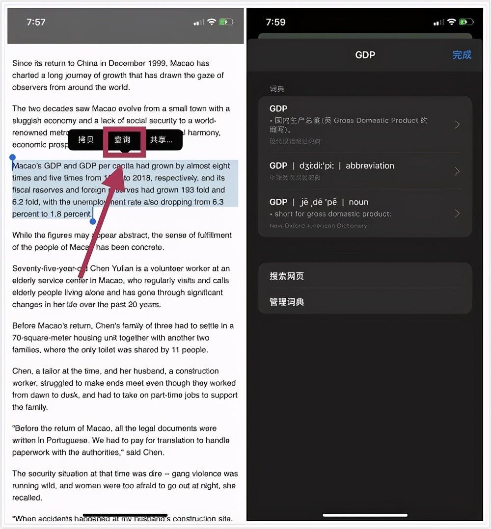 手机浏览网页的时候,可能经常会看到一些不认识的单词、句子,其实只要选中它们,就可以进行快速翻译,不过需要提前在手机设置里设置一下。