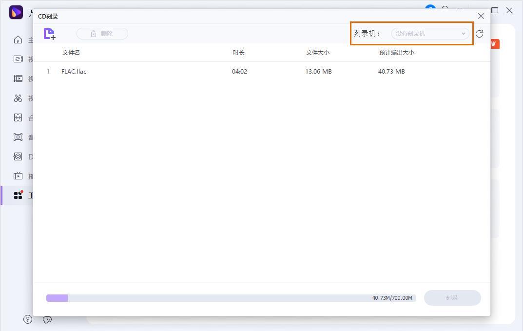 在电脑中插入CD光盘,在标示的刻录机选项中选择插入的CD,然后点击右下角的刻录按钮就可以快速完成刻录的过程。