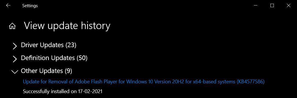 在测试中,我们发现,从 Windows Update 或 WSUS 安装 Windows 10 KB4577586 会从系统中永久删除 Adobe Flash Player。