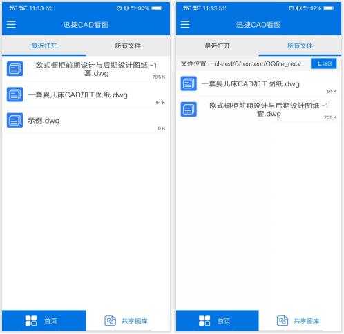 点击打开已经安装的软件,在界面的上方找到所有文件,然后对你需要查看的dwg文件进行查找。查找的路径:所有文件-Tencent-QQfile_recv。