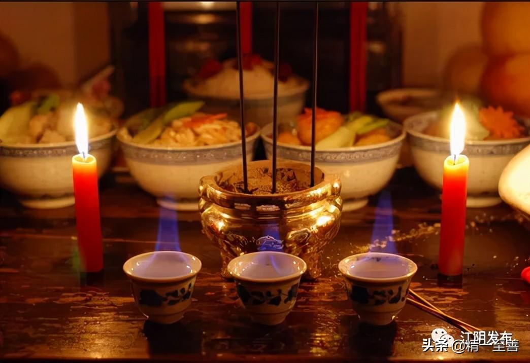 待酒过三巡,香消烛灭之时,再按辈参拜,然后焚烧锡箔纸钱,意味着:老祖宗酒足饭饱后,带着钱高兴地回天堂了。