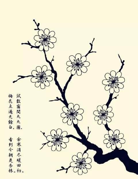 “九九消寒图”有一种“雅图”,一般是画有素梅一枝,梅花瓣共计八十一个,每天染红一瓣,都染完后,春天就已来临。“试数窗间九九图,余寒消尽暖回初,梅花点遍无余白,看到今朝是杏株。” 元代诗人杨允孚的这首诗,说的就是消寒图。