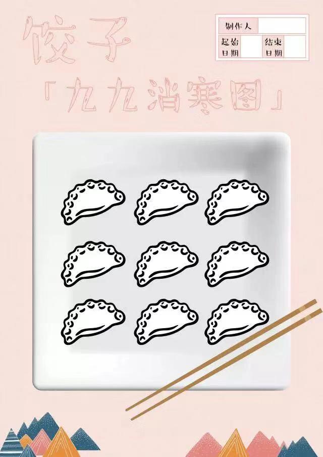 值得一提的是,随着时代的发展,“九九消寒”也被赋予了很多崭新的形式。像网友“泽栖慕忘”晒出了拼贴的《九九红梅消寒图》;也有公众号将“九九消寒图”与冬至代表性食物饺子结合了起来。