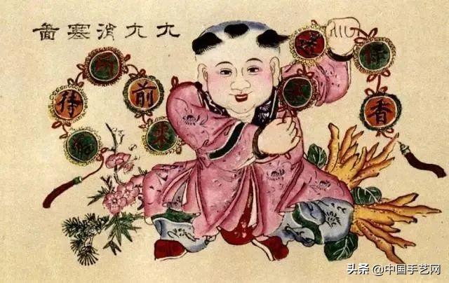 蕴含着古老农耕智慧的九九消寒图,是民间年画中历画的一种,也是早期出现的年画形式之一。它根据“瑞雪兆丰年”“晴天多虫害”“风多地干旱”等气象规律占卜来年庄稼丰欠,指导农耕,具有很强的实用意义。