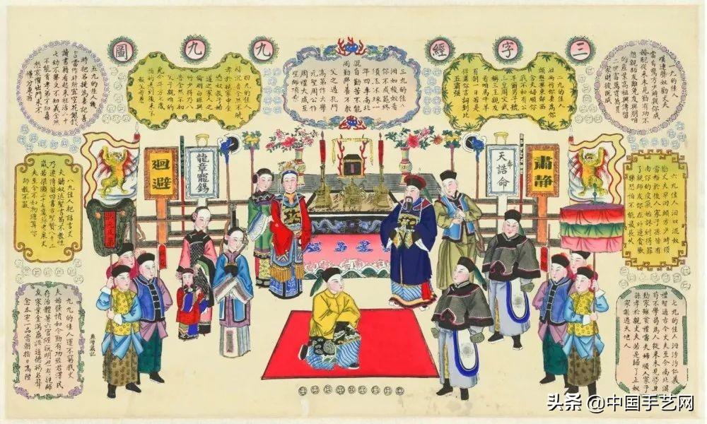 戴廉增画店半印半绘贡尖《三字经九九图》,描绘的是一衙门厅堂,当中有衣着富贵的官宦人物及随从若干。寓有皇榜高中、仕途高升、飞黄腾达之意。文字部分则是九段歌谣组成,每九皆含《三字经》数句,如“三九的佳人泪如梭,奴看你不成器,终须玉环琢。一年四季南北混,自勤苦不能尚勤学。养不教,父之过,孔门高第作大学,元圣周公作周礼,大成至圣师项。”共有《三字经》中十句之多。这对没有电视和网络的古人来说,富有普及教育的意义。