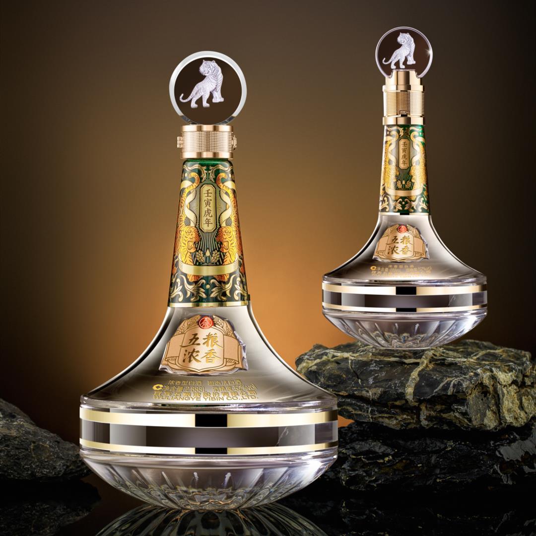 五粮浓香生肖酒造型精巧、风格典雅高贵,可以说是最用心的一款生肖酒,该款产品镶嵌鎏金五粮浓香标识,水晶瓶头内雕刻猛虎图腾,以翡翠绿、传统缠枝纹、瑞虎点缀交融为一体,体现了高端性稀有性。每瓶酒盒体、瓶身都用唯一编号的收藏证书。