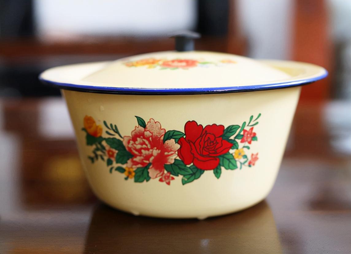 记得小时候,我家里不仅有这样的脸盆,而且现在还有一个用来装猪油的盆子,它还自带一个盖子,虽然表面已经好多地方的“涂层”被碰掉了,但是依然还在使用。听父母说这个盆子已经有近三十年了。