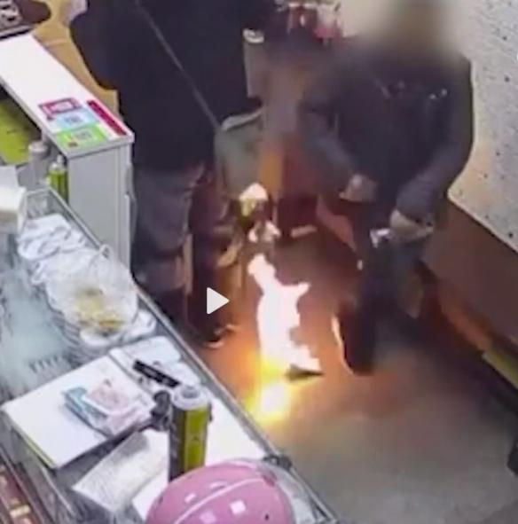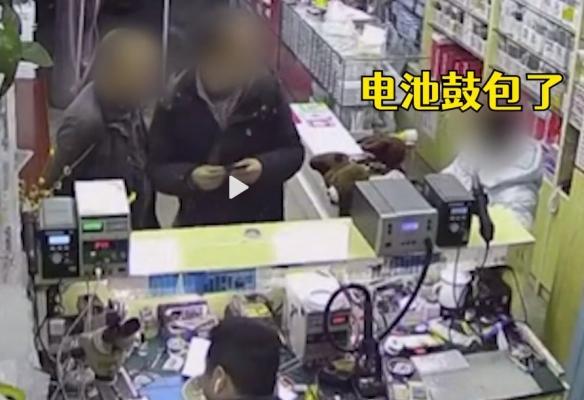 维修人员称,电池是锂电池,已经鼓包了,大爷要看看,维修人员提醒,还给大爷可以,但是不要去掰它就没事,维修人员话音刚落,大爷不信邪,看了一眼电池就把它掰了,结果电池瞬间起火,火光从手心直窜脑门,大爷吓的立马将电池丢去,维修人员看到后叫道:“叫你不要去掰啊!”。所幸当时起火没有造成人员受伤。