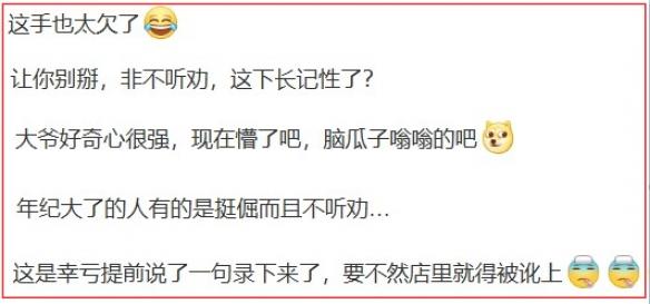 也有人认为:“很多上了年纪的人确实很倔强都不听劝的”、“这是幸亏提前说了一句录下来了,要不然店里就得被讹上”。