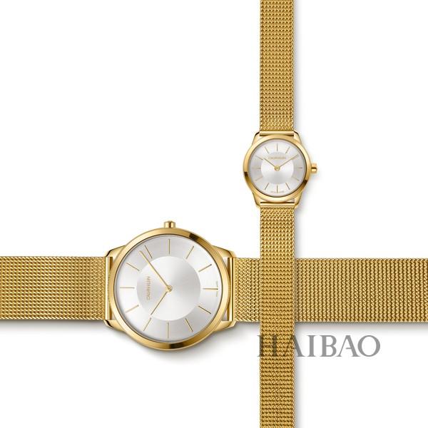 经典回归,CK (Calvin Klein) 简约系列。简约系列的设计灵感来源于复古钟表,简约系列材质轻薄,设计简洁,有银色、雅灰和黑色。表款低调精致,新推出的简约色彩系列米兰腕带有银色、金色和玫瑰金,提供顾客更舒适的佩戴感,在保持简约系列原有款式的同时提供小、中、大和特大四种尺寸选择。新款米兰腕带根据表壳尺寸进行改进与简约系列的设计形成对比。