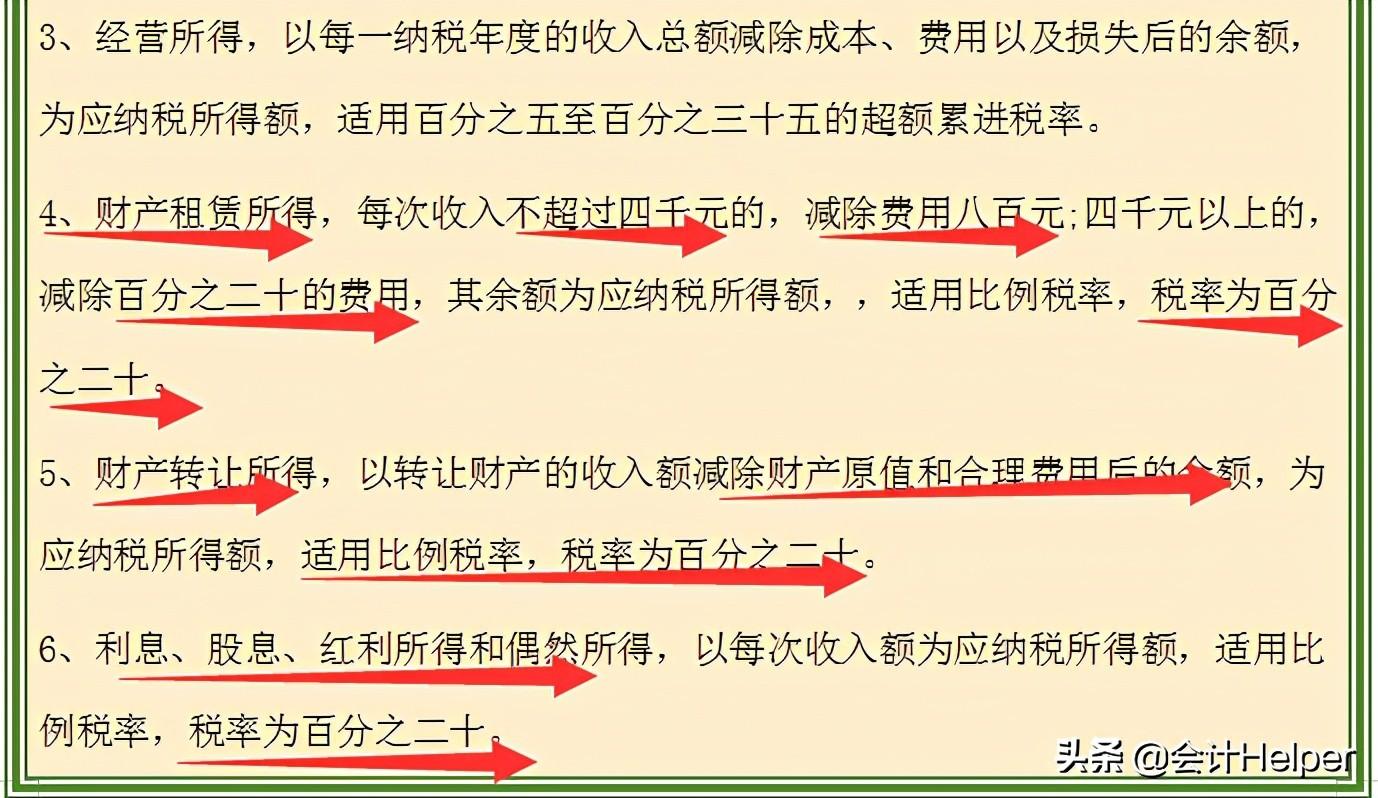 个税免征额由3500元提高到5000元。2019年1月1日实施此规定。综合所得、经营所得、利息、股息、红利所得,财产租赁所得,都有对应的适用税率,这些是在计算税费时要清楚的。今天给大家重新整理了个税政策及2021新版个税税率表,不管是普通人员还是财务人员,在日常都是会用得到的。