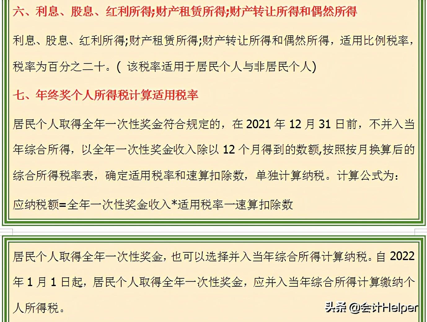 年终奖、工资薪金、劳务报酬以及红利所得等等有关适用税率及预扣率的问题,是办理个税年终汇算过程中问题较多的。接下来有关“个税政策及2021新版个税税率表”,有需要参考学习的,可以收藏起来备用。特别是在办理2020年度个税年度汇算的人员,对应的税率及计算公式都有详细的介绍,快来瞅瞅!