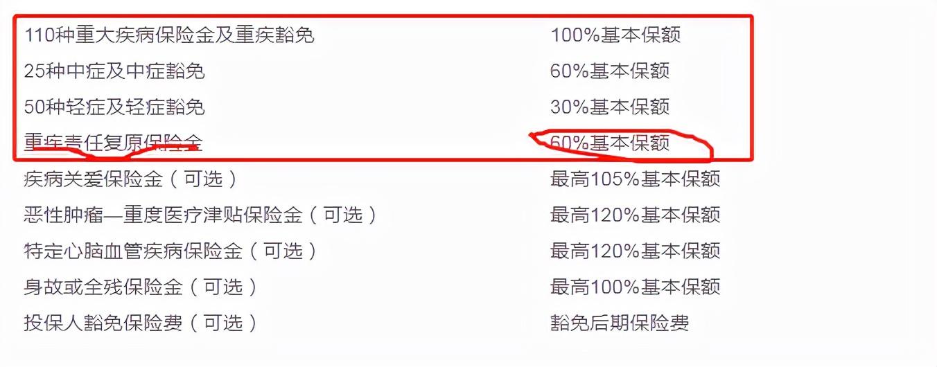 基础责任重疾+中症+轻症+重疾复原金,保障是完全够用的,