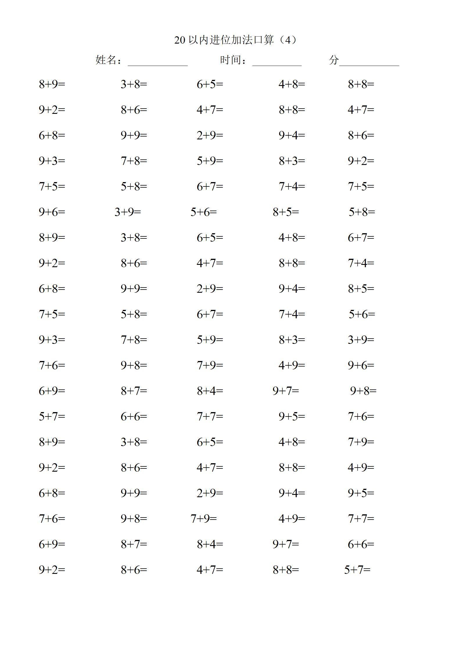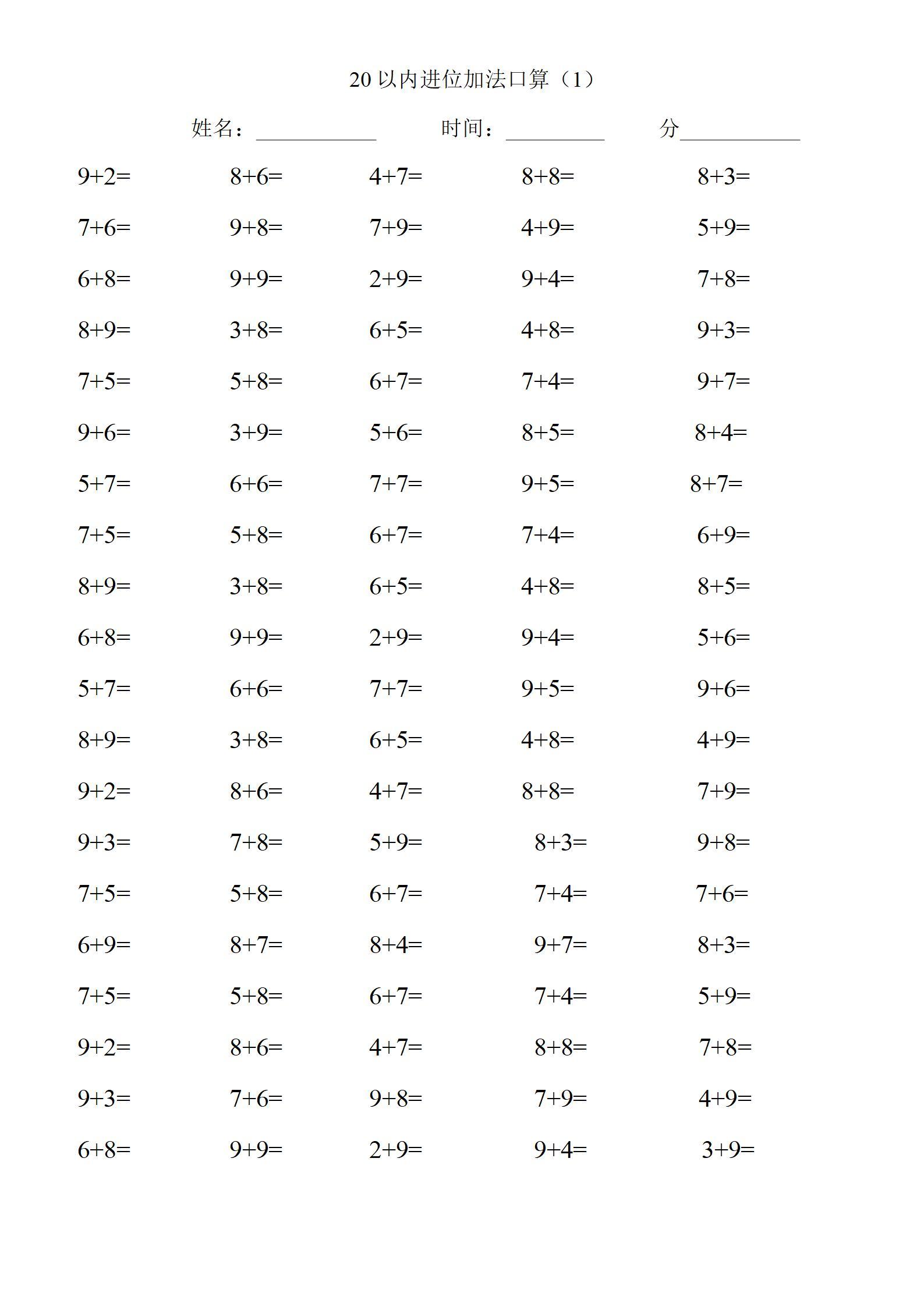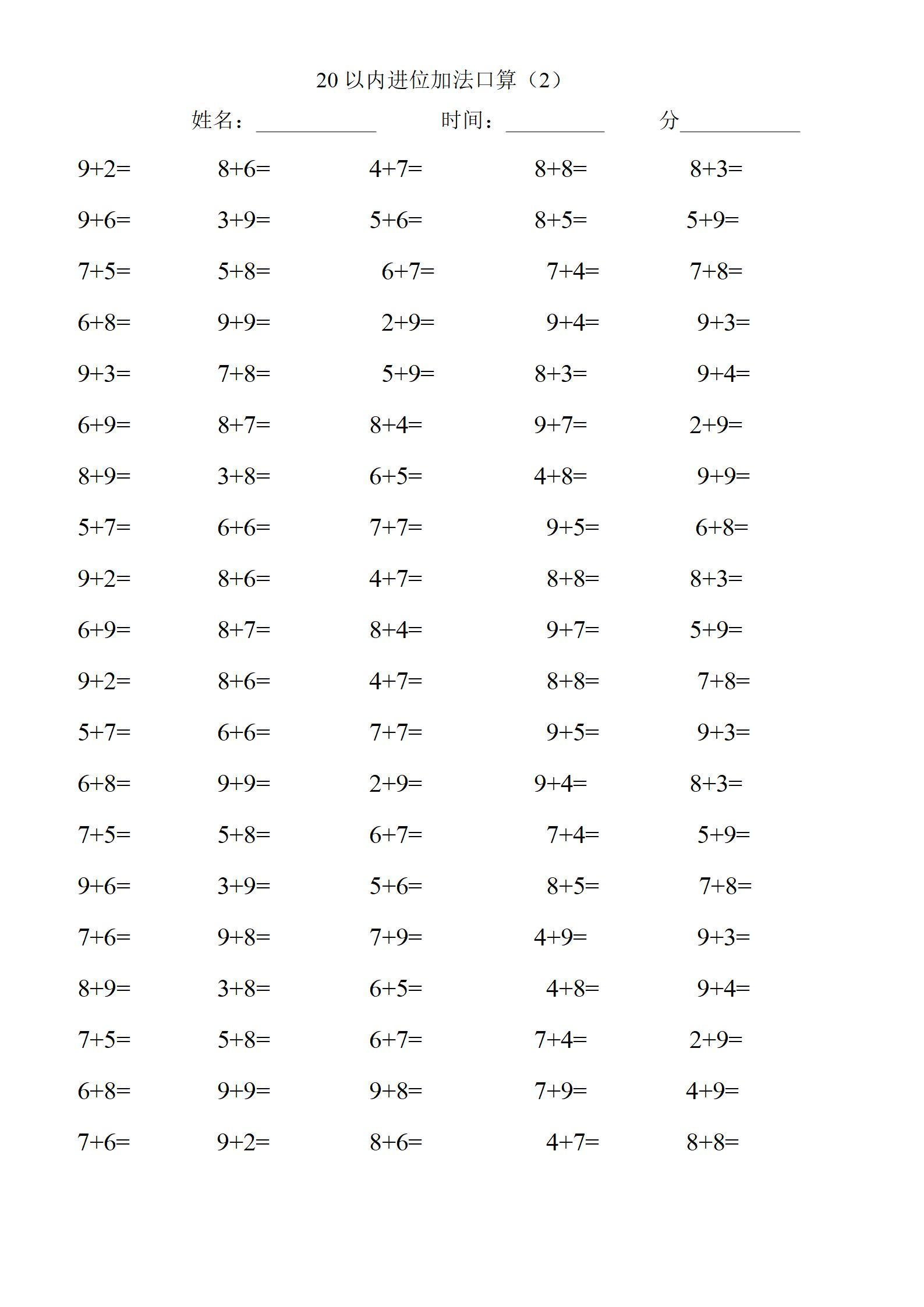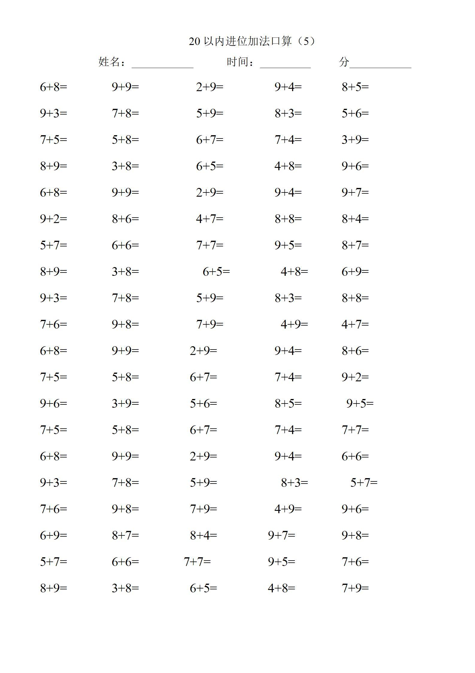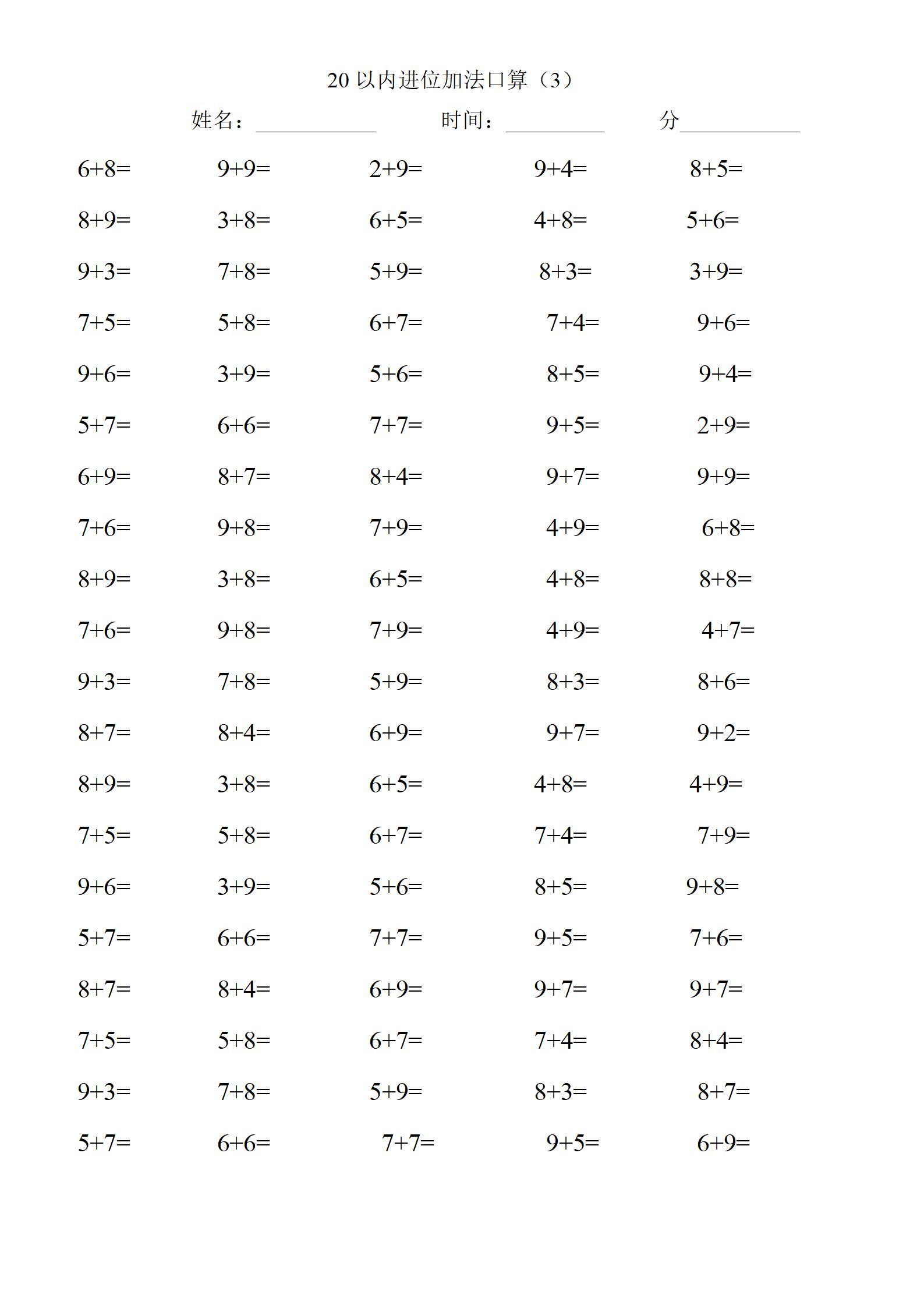 正文 20以内的加减法练习题(20以内的混合加减法口算题) kpjjhadmin V管理员 /2022-01-12 13:11:24 /333 阅读 0112 20以内的加减法练习题(20以内的混合加减法口算题)喜欢可以收藏打印 声明:本文内容及图片来源于读者投稿,本网站无法甄别是否为投稿用户创作以及文章的准确性,本站尊重并保护知识产权,根据《信息网络传播权保护条例》,如果我们转载的作品侵犯了您的权利,请在一个月内通知我们,我们会及时删除。请将本侵权页面网址发送邮件到laoyang1981@qq.com,我们会及时做删除处理。