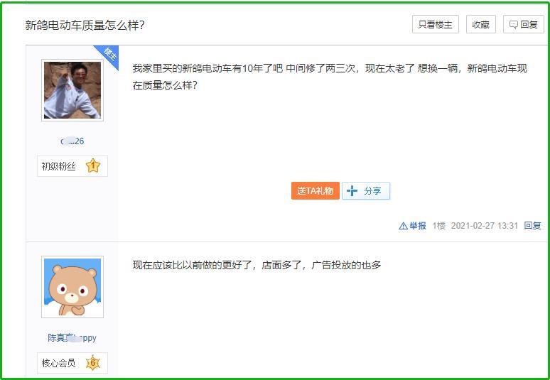 网友问:我家里买的新鸽电动车有10年了吧,中间修了两三次,现在太老了,想换一辆,新鸽电动车现在质量怎么样?