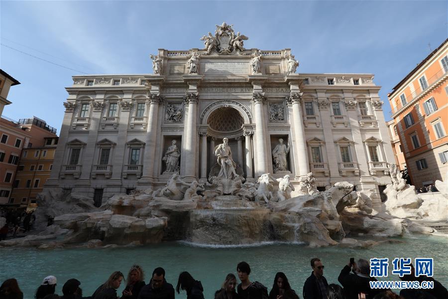 这是2019年3月6日,人们在意大利罗马的许愿池边游玩。 新华社记者 程婷婷 摄