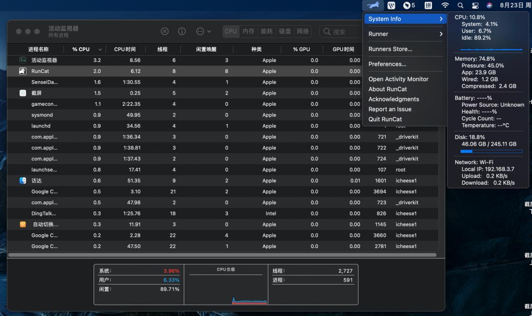 如果你希望你的系统监控软件不仅要兼顾实用还要美观的话那 runcat Mac 一定会给你不错的体验。