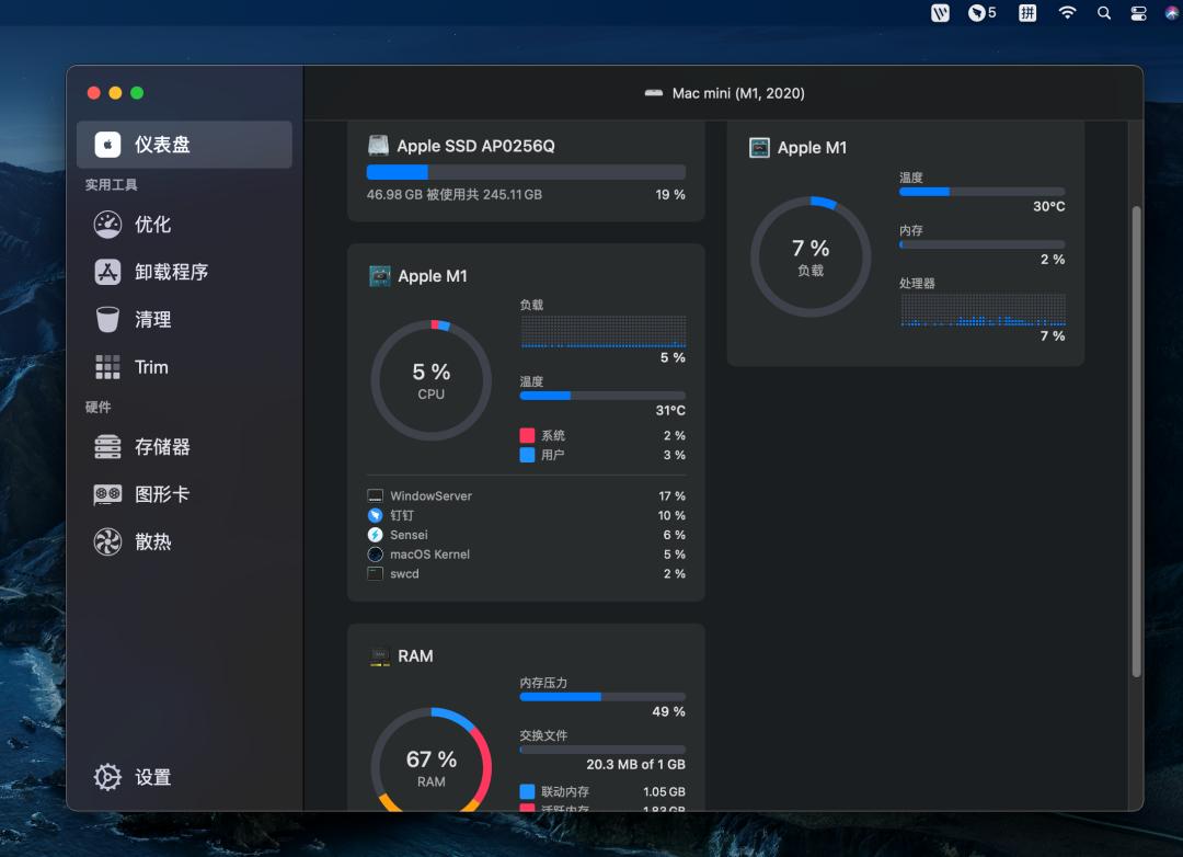 能够很好的解决系统上存在的一些垃圾文件,以及系统的硬件检测等。如果你不仅需要系统平时的监控,还需要其他的一些优化解决方案的话,Sensei 一定是你的不二之选。