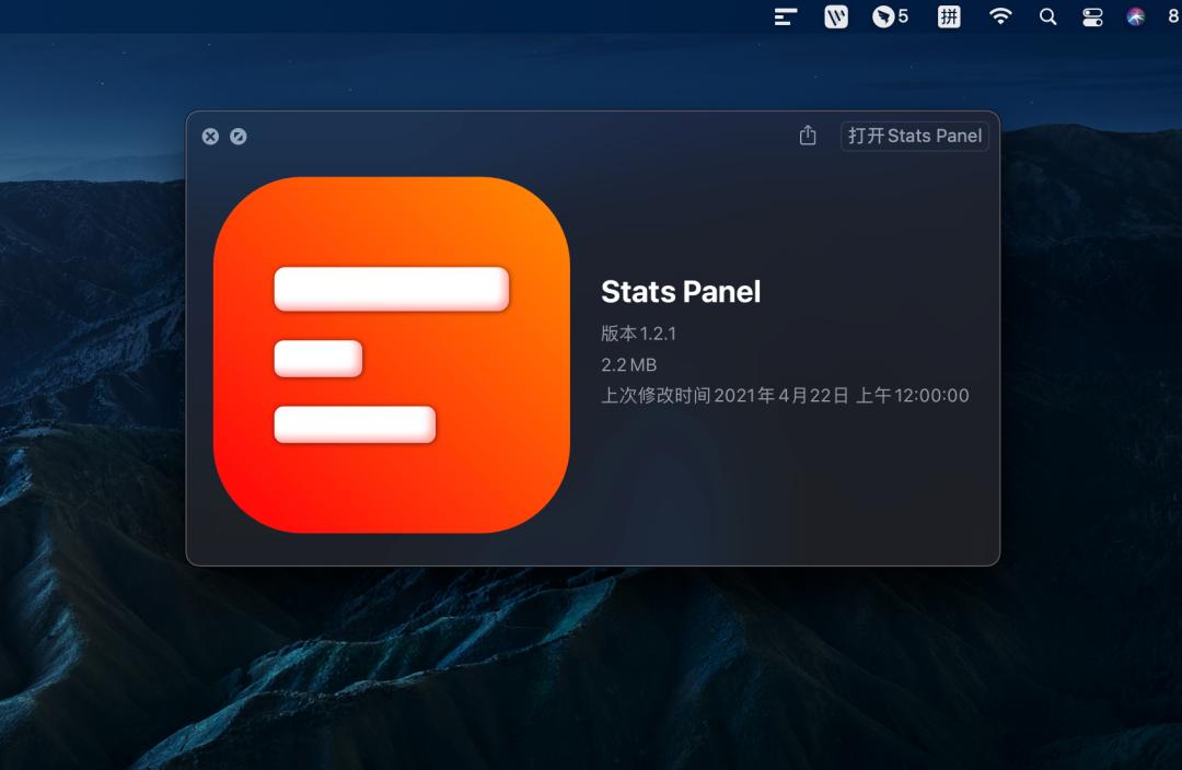 Stats Panel Mac 是一款适用 Mac 系统监视控制面板信息的工具。