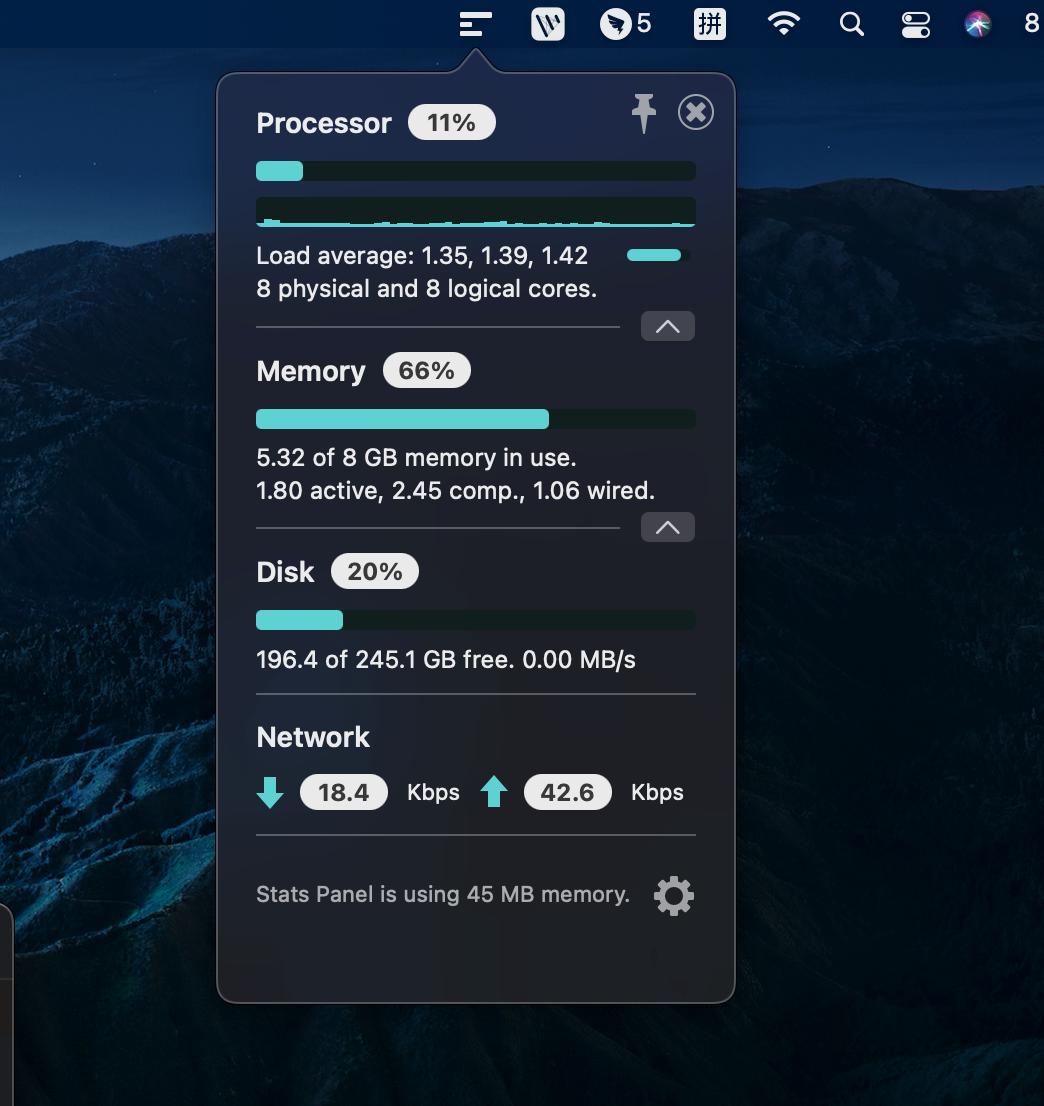 如果你希望你的系统软件更加轻量化,更加简洁,那 Stats Panel 或是 eul 也是值得推荐的软件。