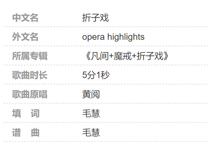 《折子戏》是由毛慧作词、作曲,黄阅演唱的一首为纪念偶像张国荣梦幻一生所做的歌曲(纪念张国荣代表作)。