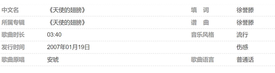 《天使的翅膀》是由徐誉滕作词作曲,安琥演唱的一首歌曲,其中西单女孩翻唱的版本尤其空灵。