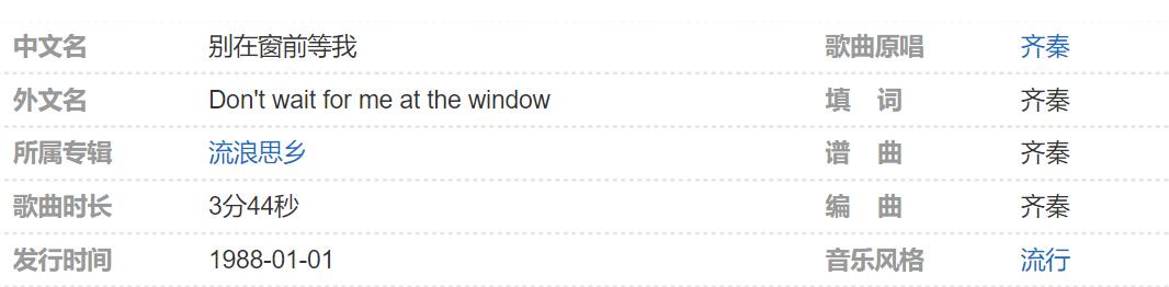 No.10 齐秦--《别在窗前等我》